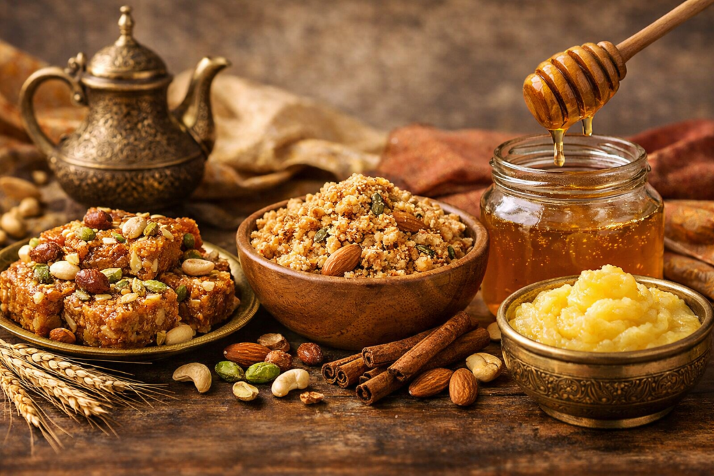 Experience pure Desi Ghee, natural Shehad, nutritious Panjiri, and famous Sohan Halwa prepared with tradition, care, and quality.